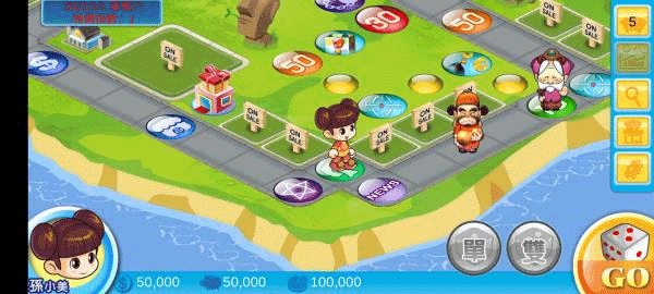 通过由掷骰子来决定行进的步数,还可以随意在停留的地方买土地、盖房子,幸运的话还能有财神爷降临。