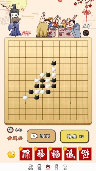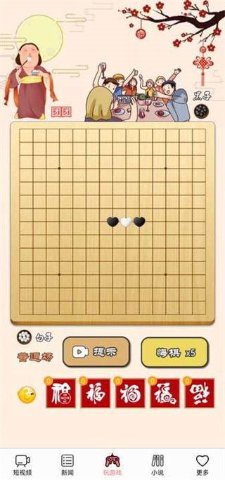 1、迎春五子棋游戏有闯关集福、真人对弈、趣味模式三种玩法,玩法其实都差不多,这里给大家介绍一下闯关集福怎么玩;