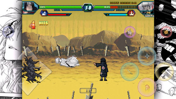1、新火影对战死神的格斗体验,超多角色选择,以像素风格呈现还原经典动漫人物,创意对战方式,乱斗欢乐氛围,