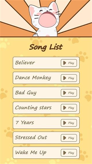 popcat音乐世界整个游戏就围绕着音乐主题展开,游戏曲目涵盖了各个国家和不同风格的流行歌曲,让玩家可以在游戏中欣赏美妙的音乐;