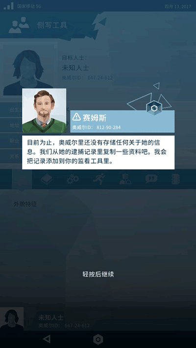奥威尔无所遁形也叫做Orwell,是一款虚拟现实解谜游戏。刚进入游戏,玩家作为奥威尔系统测试员准备进入奥威尔系统,设置好相关信息后就能正式进入游戏内容,游戏围绕一桩连环爆炸案展开,作为调查员的玩家,为了找到背后元凶,利用搜索网页、翻看社交媒体、网站档案、新闻评论和博客等渠道寻找与嫌疑人和爆炸案有关的信息,奥威尔系统可以查看全国公民的所有隐私,因此你可以全方位的入侵嫌疑人的私人生活,监听聊天通讯、阅读私人邮件、入侵电脑、调阅医疗档案、建立信息之间的联系等。找出一切你需要了解的信息。玩法并不难,但是要在海量线索中找到关键线索将其联系起来却不简单,随着你的网上行动逐渐深入,你可能会陷入自我怀疑当中,很难始终保持公平正义,但生而为人,谁都是这样复杂的活着的,所以不管最后的游戏结局如何,只要你能尽自己最大的理性去看待一切,那么你就是成功的。