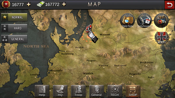 地图系统是完全重新设计的,支持无缝缩放,每个国家的领土和边界清楚地显示出来。除了用打打敌人的策略,你也可以在商店里购买物品,雇佣将军和建造你自己的军队。每个军队都有自己的特色,有效地掌握它们,并且是不可战胜的。