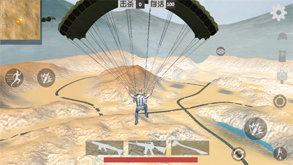 绝地吃鸡是一款3D写实风格的枪战射击大逃杀手游,辽阔的荒野地图场景,与众不同的逃杀竞技,以及吃鸡该有的元素这款游戏全都有,跳伞、跑毒、捡装备等玩家都可以在这里一一体验到。在玩法上与市面上的吃鸡手游一般无二,游戏中玩家们将乘坐飞机自由跳伞,在这个过程中你可以任意的选择跳落点,你需要做的就是落地后搜罗武器装备,利用岛上多样的武器与道具淘汰其他人,运用自己高超的技巧,carry全场,成为最后的生存者,以此获得游戏的冠军之位。