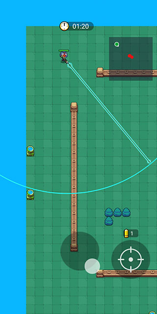巧妙的关卡设计,每一关中都有不同的机关和障碍物,还有各种稀有的道具隐藏其中。游戏的操作非常简单,玩家只需要简单的操控方向再点触即可完成射击。将吃鸡的玩法和2D击相结合,氛围更加轻松,也更加容易上手,玩起来十分解压。海量关卡和场地,巨大的可动范围,与其他玩家各自为战,尽情享受刺激的对决冒险。游戏的玩法非常的真实,带给你身临其境的体验,同时也简化了很多的操作。