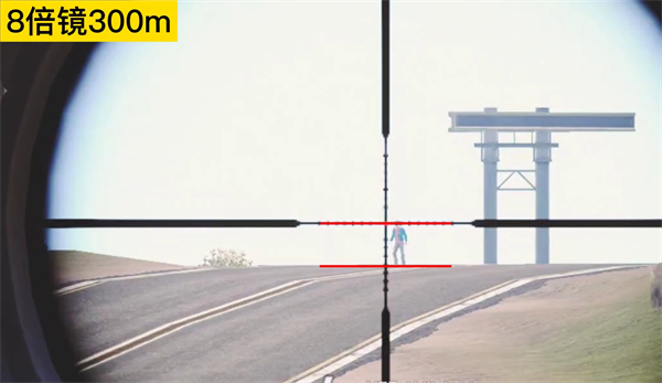 距离敌人300m时,此时玩家的高度正好到倍镜的第五个刻度,这时正好就是300m,此时的爆头点是在瞄准线下的第一个刻度
