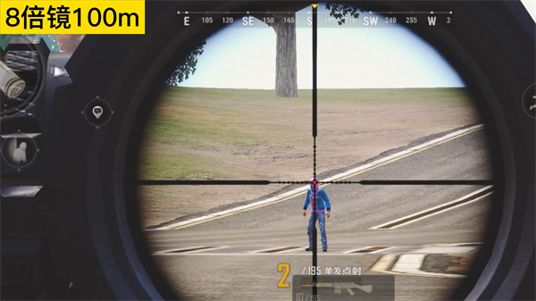 其次是8倍镜,当距离敌人100m是,距离有点近,直接准心点爆头就好了