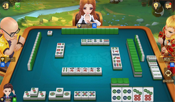 初始的游戏对局,系统自动匹配麻友,经自动洗牌和摸牌后,将对游戏小白进行全面的引导。当遇到吃、碰、杠、胡等情况时,系统会自动提示,在玩家确认一项选择或倒计时结束后,即继续后续的牌局。