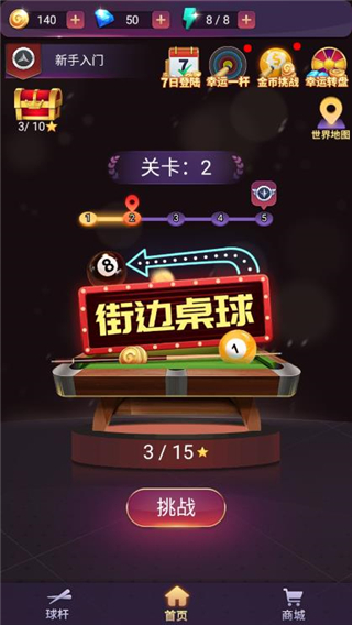 游戏还提供了丰富的装备系统,玩家可以收集各种特色球杆,有的延长线长方便进球,有的特效炫酷。在游戏中既能提升台球技巧,又能打发时间,可以说是一举两得。新手教程也很贴心,帮助新人玩家快速上手。