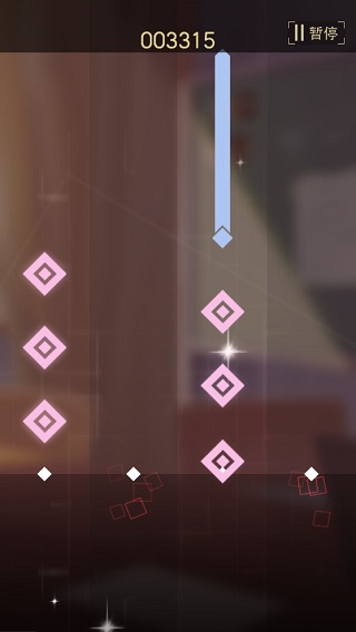 当出现一个菱形方块的时候,单击即可;当出现方块与长条的结合,需按到长条结束;部分长条的结尾还有方块,此刻需要松手。