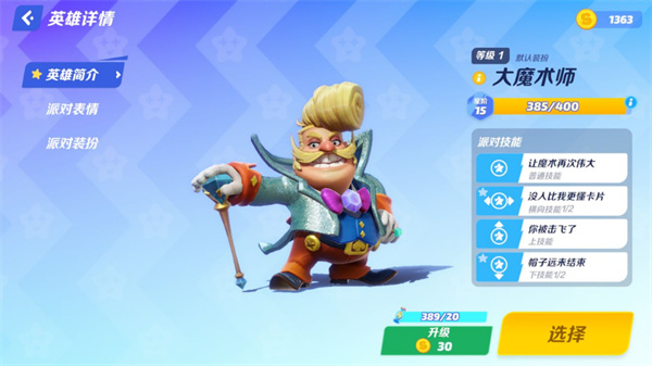 《派对之星》是一款以“击飞”为目标的格斗手游,操作简单,适合新手快速上手。游戏的核心玩法是通过累积对手的击飞值来击败对方,而非传统的打血条模式。游戏中有数十种各具特色的英雄角色,每个角色都有独特的技能和战斗风格,比如白雪的屏障系攻击、赛维的突进压制,以及大魔术师的远程骚扰能力。