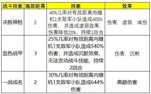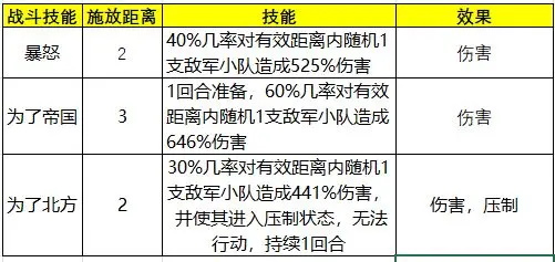 中排骑兵支援英雄。5技能高概率使小队进入复生状态,并恢复兵力值,提升队伍存活率。8技能有概率跳回合,增加队伍技能伤害,使队伍更快出手。