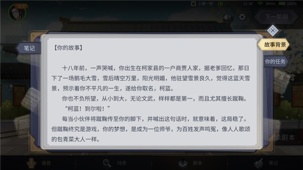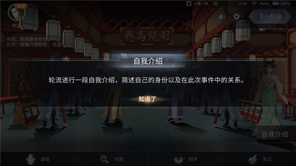 3、通过点击剧本了解这个剧本的故事背景和你的任务,了解过后点击右上角进入下一阶段;