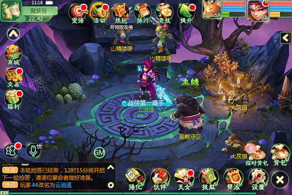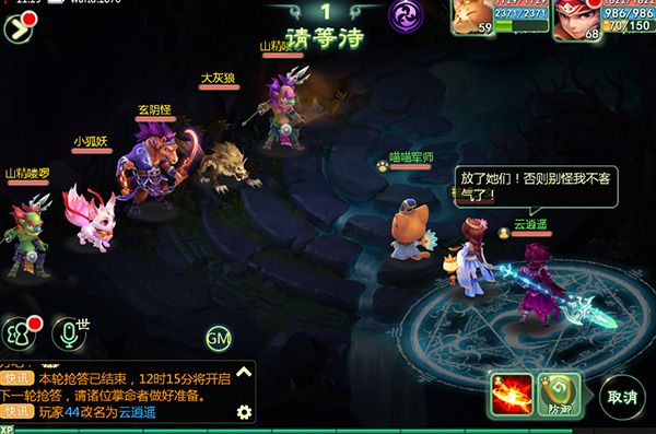 (3)操作回合玩家有30秒时间进行角色和宠物的指令操作,先进行角色的指令操作,再进行宠物的指令操作