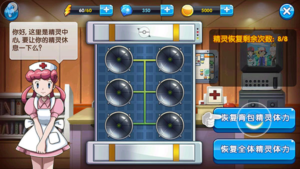 6、战斗结束后,可以前往精灵中心恢复精灵的的状态,但每日的恢复次数是有上限的。