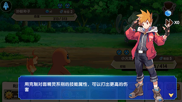 新手攻略方面,创建角色后可以选择小火龙、杰尼龟或妙蛙种子作为初始精灵。战斗教学简单易懂,玩家需要通过削弱对方精灵的血量来获胜,技能卡片可以用来攻击,每个技能都有使用次数限制。绿色箭头代表克制敌方精灵,红色则表示被克制。击败敌人可以获得经验升级,提升属性。