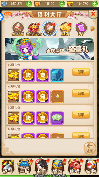 4、新人玩家还能领取新人登录福利,连续登录7天,领取蜘蛛精、大量经验、境界丹等奖励。