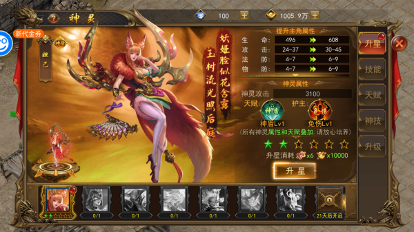3、使用材料进行升星/技能升级/天赋升级/神技等。
