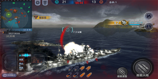 《巅峰战舰》为玩家提供了自动与手动两种操作模式,自动模式中舰船将会随着玩家设定的方向前进,玩家可以将更多精力放在对手身上,而手动模式是为更加追求操作和个性化的船长准备的,操作过程较自动模式更为复杂,需要兼顾方向、瞄准、开炮等操作元素,但是随之而来的好处是玩家对战舰的控制更加细致,在混战中可以带来巨大的优势。