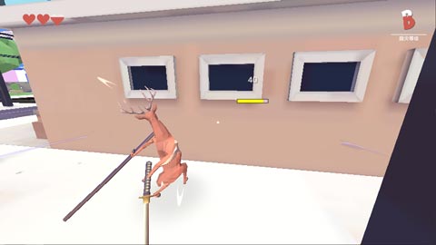 帅气的武士刀永远都是最受欢迎的武器之一,然而在沙雕鹿里武士刀的使用着实比较拉跨,需要按住shift手持使用,而且在使用的时候必须做出完整动作才能造成伤害,狂按鼠标会导致一点伤害都打不出来。