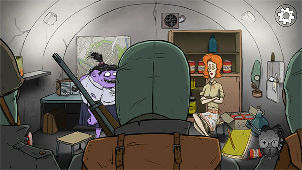 收音机与军队取得联系――军队需要定位(用纸牌或地图或手电筒或口琴)――军队要求砍树或者交枪――军队要求派一个人见面――军队来救援(敲门)