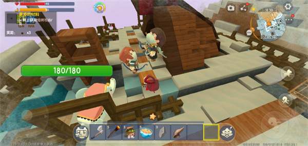 2、我们点击创建冰原冒险,进去之后会有介绍,可看可不看,点跳过,我们就会出现在冰原附近,这里也会有个小房子,屏幕的左上角也会出一些目标,完成任务可以获得相应的奖励。