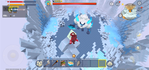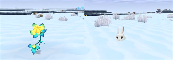 3、我们向冰原的内部一直走,是会很快找到冰原村庄的,更新后的冰原也是出现了许多动物呀,有活泼可爱的小兔,主要是分为两种颜色:白色和棕色,还有耗牛有大有小,也会有冰冻人,击败后会掉落手上的武器,用它大打其他动物可以把它冰冻上。