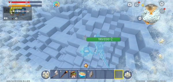 6、在这里提醒一下去冰原探险的冒险家们,当温度到达一定的程度时,如果太冷了会把人冰冻住哦,大家可以看见屏幕的左上角有一个温度计,建议去冰原的冒险家们准备好装备哦。