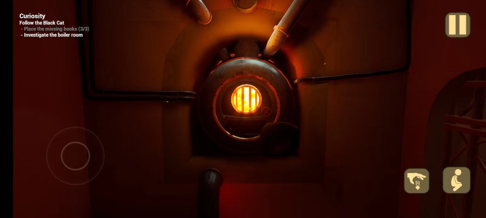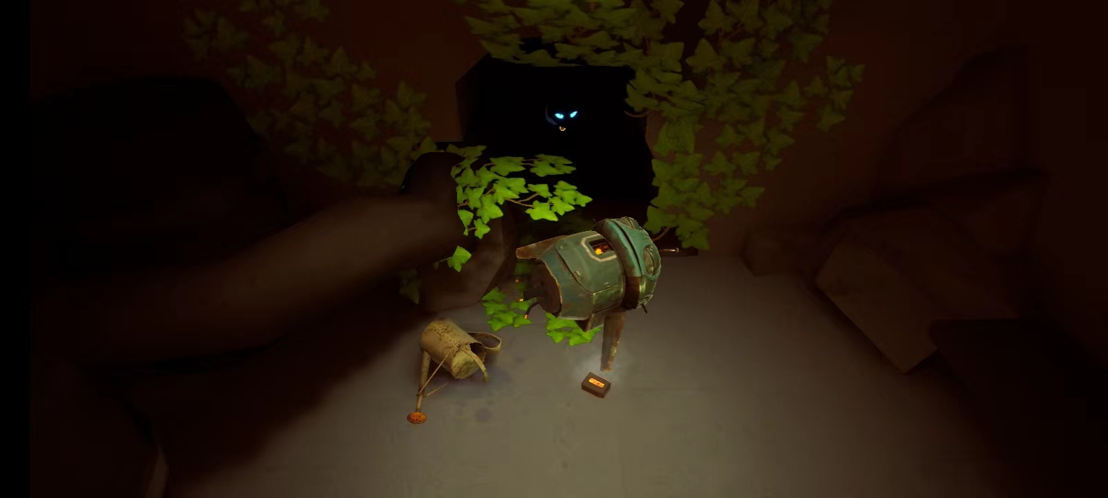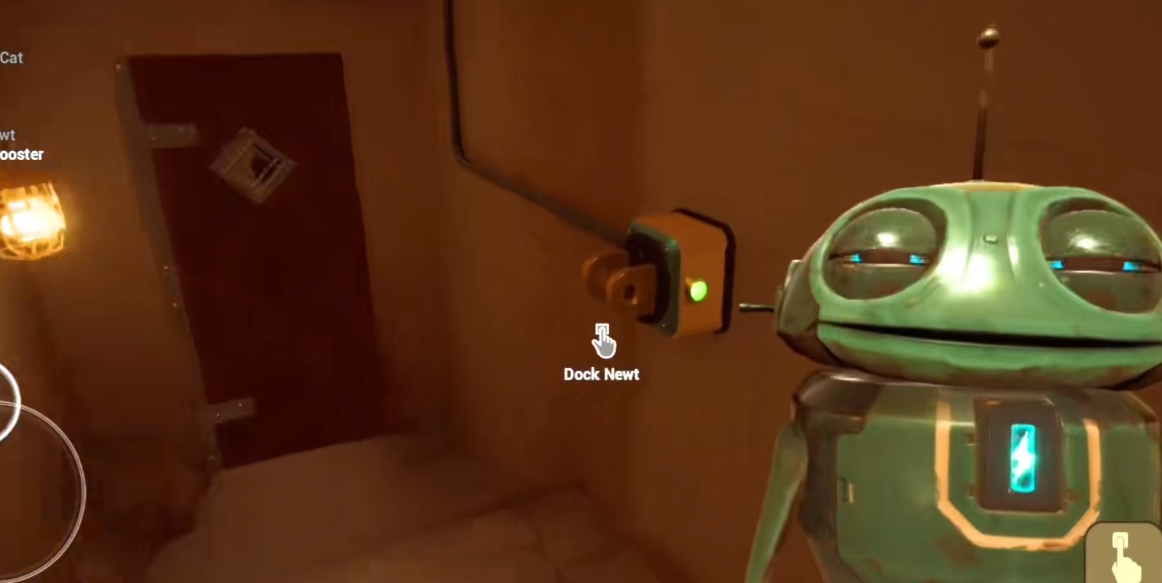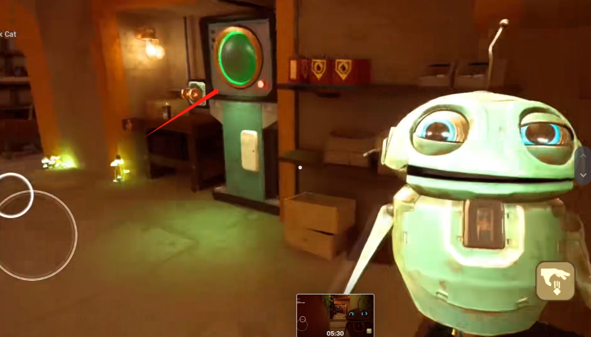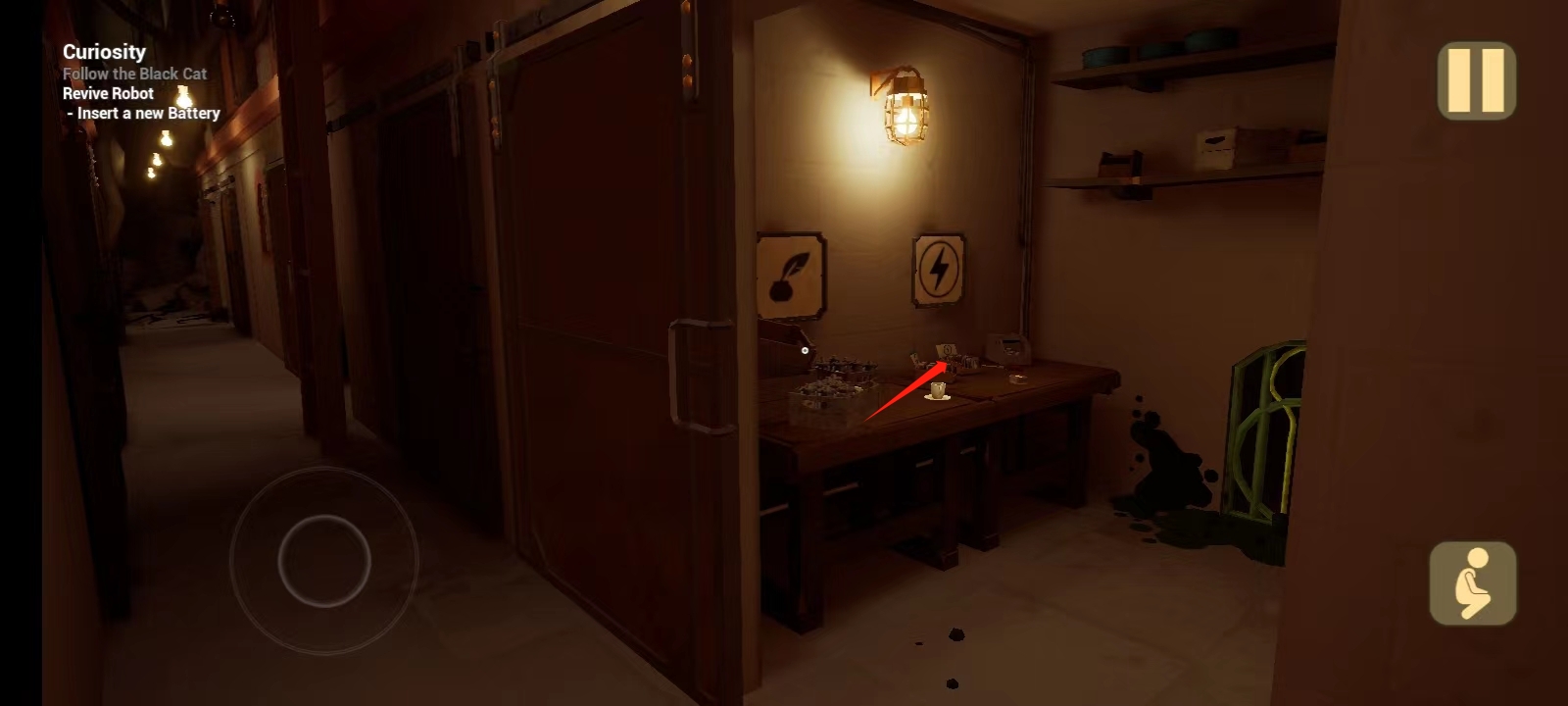 10、往右边走,打开里面那扇门,会发现小猫,然后会出现一个机器人,玩家需要找到电池;