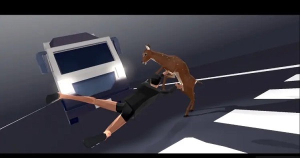 但这时候剧情才让我回过神来,这是个鹿模拟器!鹿模拟器!怎么会让你玩人呢?于是刚捏好的主角就为了救一头鹿而被车撞了,场面十分可怕。