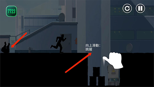 4、向上滑动屏幕即可起跳,玩家可以利用起跳跳过障碍物,甩开后面的追随者。
