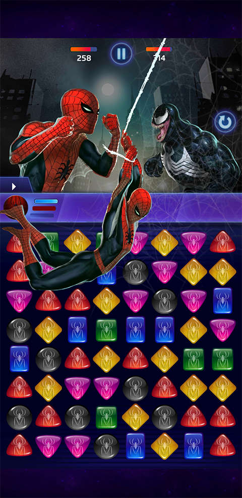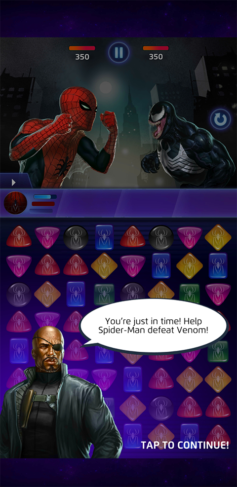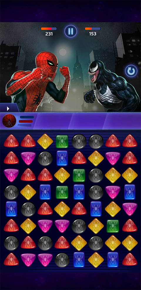 1、漫威题材的展现,让经典而又平平无奇的消除类游戏得到全新的体现。