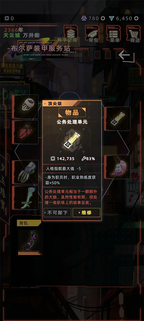 对于新人玩家,体力管理很重要。使用肝脏辅助装置和机能活跃液可以在降低压力的同时保持体能。背包物品的继承也有多种方式,可以直接赠送或通过载具存放。刷抱负点是提升游戏体验的关键,推荐优先完成一至四星抱负,避免五星限制。