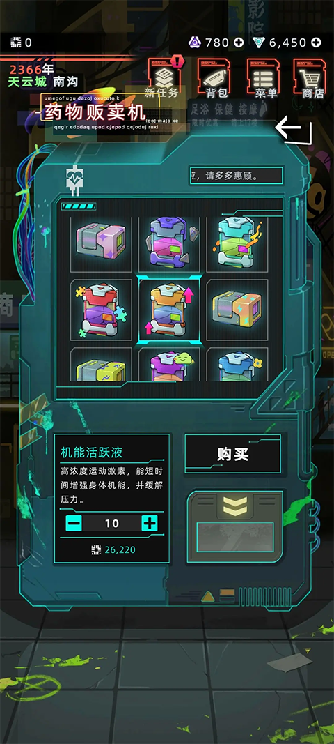 2、前往药物贩卖机购买‘机能活跃液’(初代价格应该在2200+一瓶)