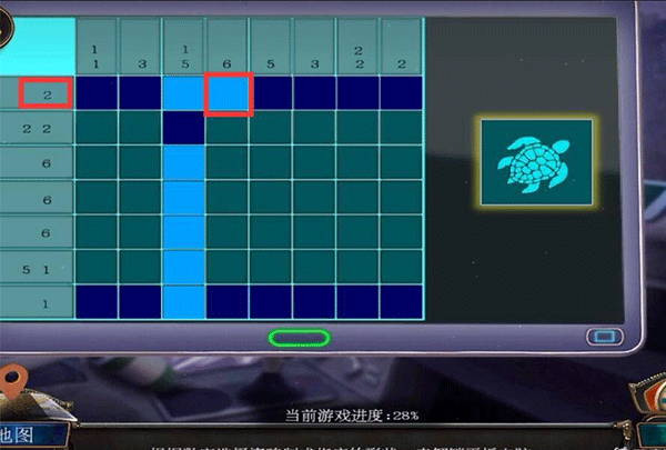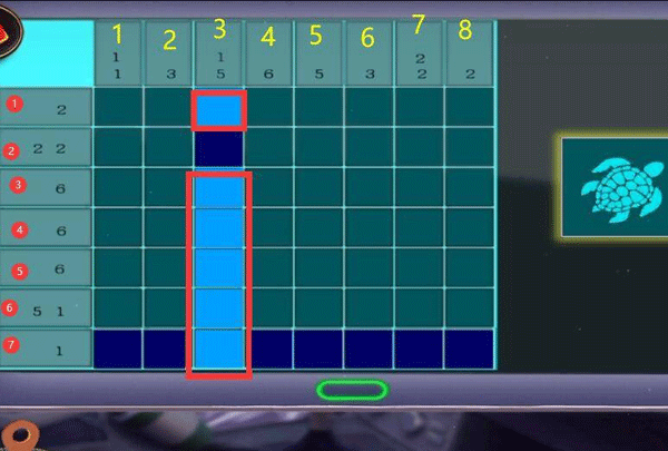2、会进入乌龟平板的小游戏,需要根据数字选择瓷砖制成指定的形状,来解锁平板电脑。