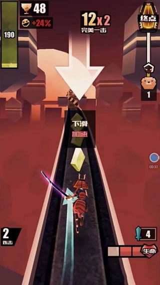4、遇到空中飞行怪怎么办?不要急,上滑+侧滑的组合方式即可完美杀敌,在高空中下滑也可创造群体攻击