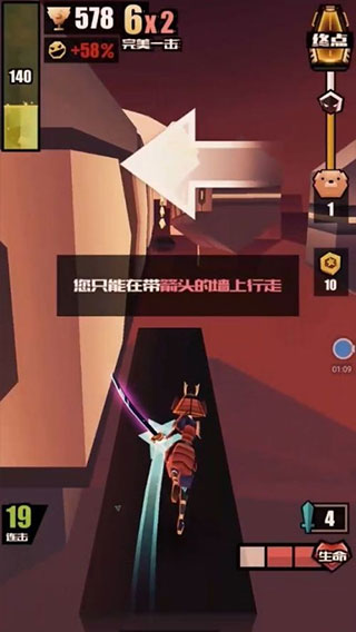 5、咦,前方没有路啦,这时可以左右滑动在带有箭头的墙上行走,哈哈哈有没有飞檐走壁的感觉呢