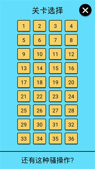 还有这种骚操作游戏是青豆工作室基于《还有这种操作》系列推出的番外篇,因为用到了不少硬件功能,所有有些机型可能会存在一些问题,不过看名称玩家就会知道这依然是一款骚操作解谜过关游戏,它将会以各种你意想不到的方式完成解谜,无论是怕关卡太难,怕关卡太没新意,还是怕关卡太少的朋友都不用担心,且本次小编还带来的是还有这种骚操作全关卡解锁版,共计36个关卡选择,想玩哪关点击即可。