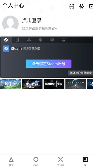 概念版更加强调内容的推荐机制,玩家能更方便的看到自己感兴趣的内容。 【丰富的游戏资料库】Steam、Switch、PS4平台所有游戏全收录。游戏折扣、史低、当前在线等信息一览无余。 【热门游戏战绩查询】支持绝热门游戏战绩查询。同时支持Steam和PSN平台的账号绑定,同步账号相关数据。
