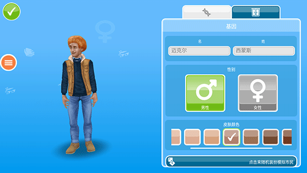2、进入模拟市民定制页面,此时需要捏一个虚拟角色,代表你以后在游戏中的形象,包括肤色、妆容、服装等都可以定制。