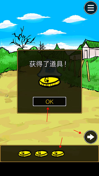 3、拾取金币后点击向右箭头