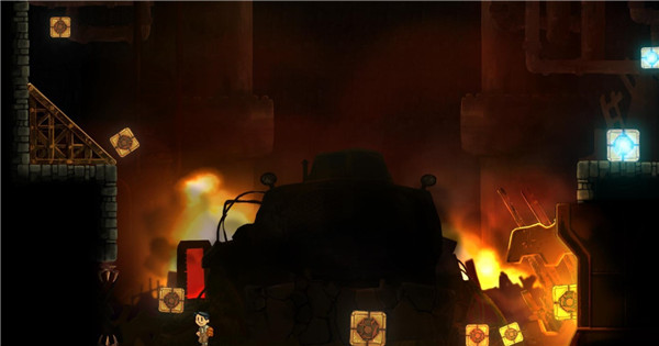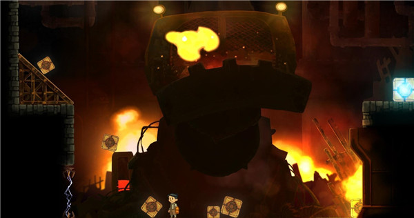 游戏的核心在于利用电磁效果完成机关操作,比如吸引或排斥金属物体来推动剧情发展。此外,玩家还需要面对三个极具挑战性的BOSS战:钢铁巨兽、钢铁巨鹰和大胡子。每个BOSS都有独特的攻击方式和战斗策略,尤其是大胡子的激光炮和机械鹰崽,让战斗充满紧张感。