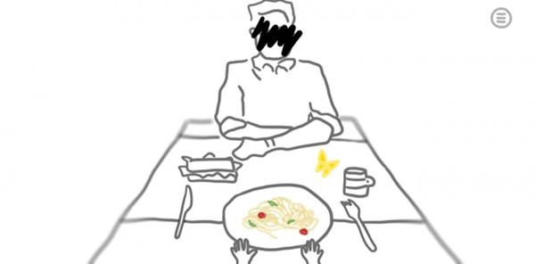2、一瞬间代入患病者去看待这个世界,发现无论在餐桌中的小蛇还是追究到摔碎花瓶时候重叠又破碎的设计,都结合这朦胧空洞的画风给到了更多切入实际的病患感受。