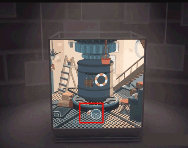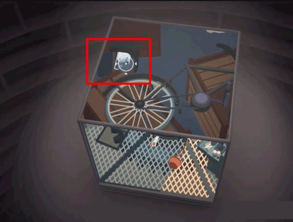 我们可以利用桌子上的台灯进行拼接,从而将仓库门前地面上的井盖抬起,打开立方体上部的画面。
