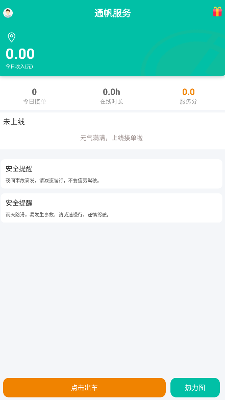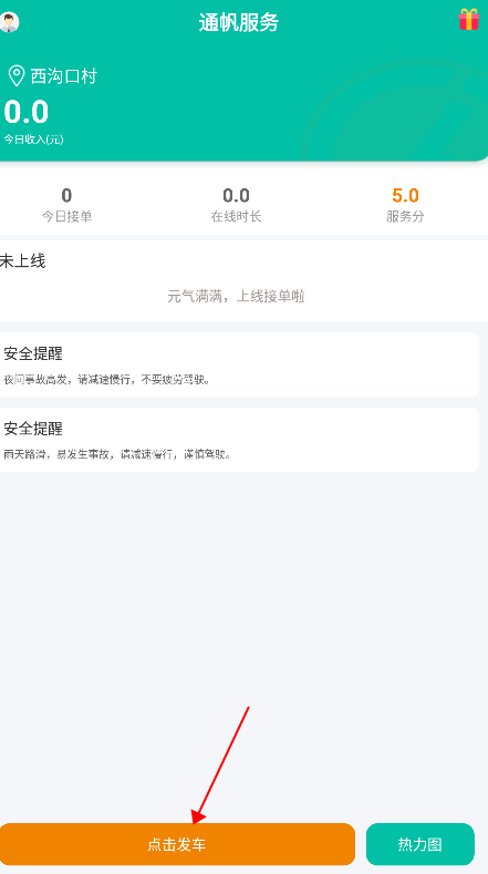4、认证点击出车,就能开始接取附近的订单,获取到收益。