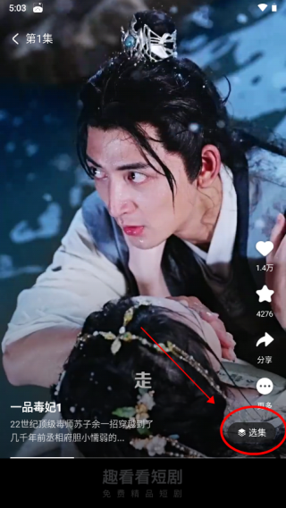 3、点击选集,可选择集数进行观看(软件会自动记住浏览历史,从你上次看过的地方继续播放);