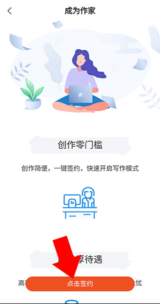 如果你是写作爱好者,还能申请成为签约作者,流程也简单:点开“我的”→点击“成为作者”→完成签约就搞定了!有了这样的平台,看书和写书都变得超方便,强烈推荐给小说迷们,赶紧下载试试吧!