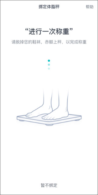 4、进入后,请脱掉您的鞋袜,赤脚踩上体脂秤设备,开始连接手机;