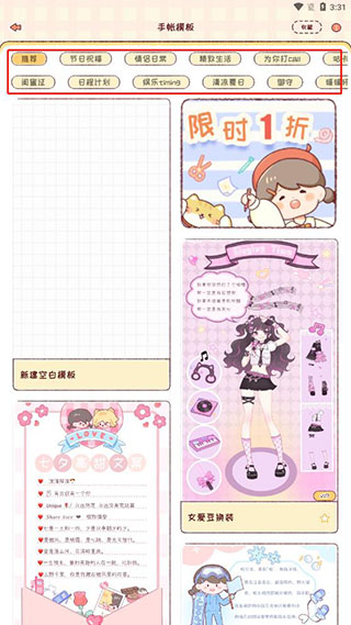 3、里面为大家带来了海量的手账模板,情侣日常、精致生活等各种类型的都有;