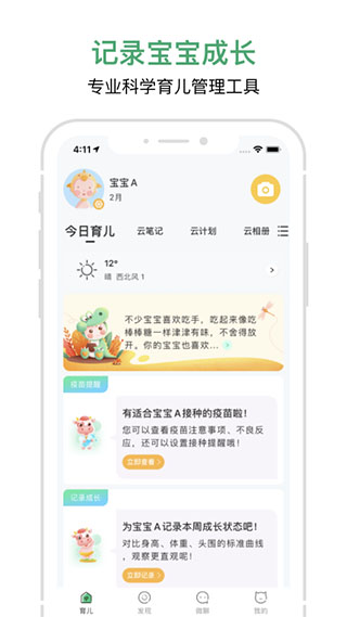 11、云相册:一键自动整理,邀请家庭成员一起分享宝宝成长的喜悦。