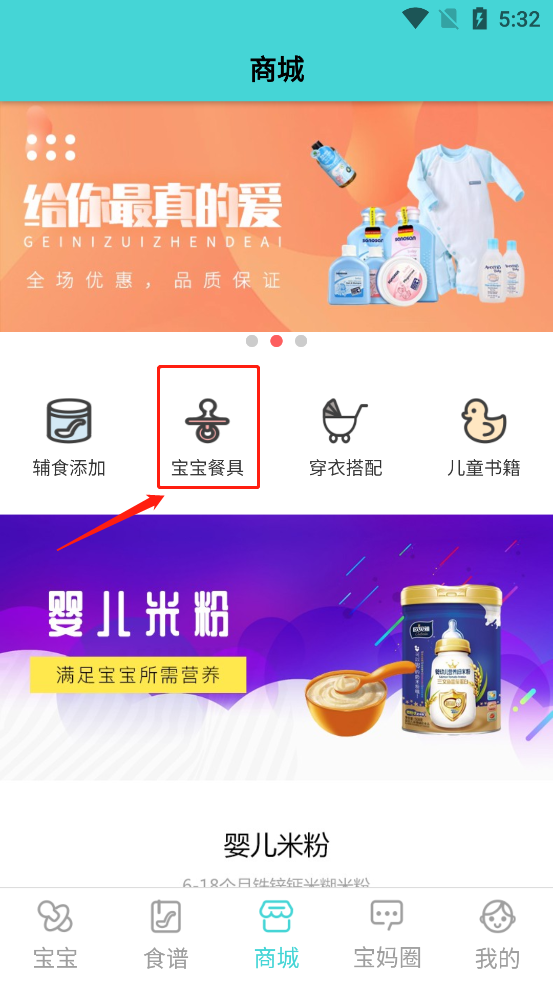 第一步:打开软件,点击“商城”(宝宝的辅食、辅食、书籍等也可以在该页面购买噢~)